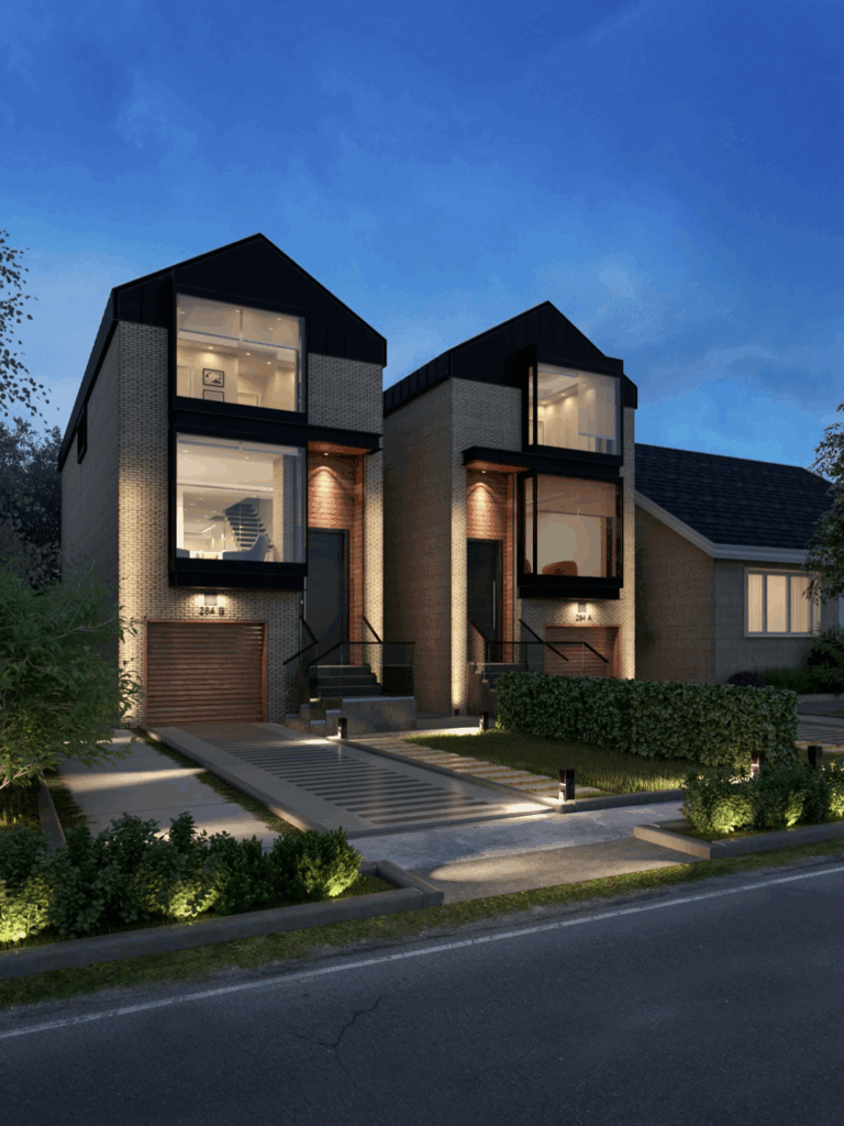 Quadrant Architects helps Toronto landowners and developers navigate severance, rezoning, minor variances, and subdivisions with confidence. Every design we create is unique — never reused — and tailored to the client’s goals, the site’s conditions, and the requirements of zoning by-laws and the Ontario Building Code. From feasibility reviews to final approvals, we manage the entire process so you know what’s possible before investing further.